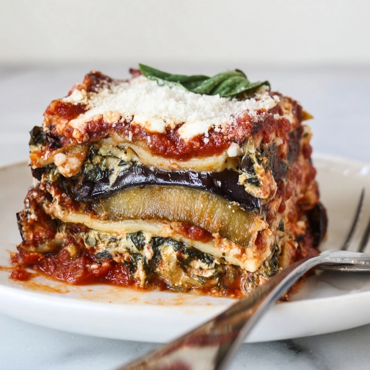 In summer, try grilled zucchini instead of eggplant for a lighter twist. When tomatoes are in season, use a homemade sauce made from juicy heirlooms. For winter, layer in sautéed mushrooms for extra umami. Helpful notes Always salt the eggplant lightly before roasting to prevent sogginess. Let the cooked lasagna sit before slicing so it holds together beautifully. You can make it up to two days ahead and bake before serving.