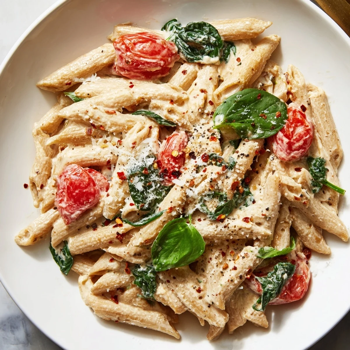 Once you understand how this sauce works, you can build around it endlessly. Stir in cooked chicken breast or crispy tofu if you want even more protein stacked on top of what's already there. Swap the spinach for arugula, kale, or even peas depending on the season and what you're craving. The sauce behaves beautifully with almost any vegetable, so treat this as a starting point rather than a strict blueprint. I've added roasted broccoli, sautéed zucchini, and even caramelized onions on nights when I wanted something heartier. The pasta water ratio is your real friend here—adding it gradually means you're never more than a splash away from the exact consistency you want.