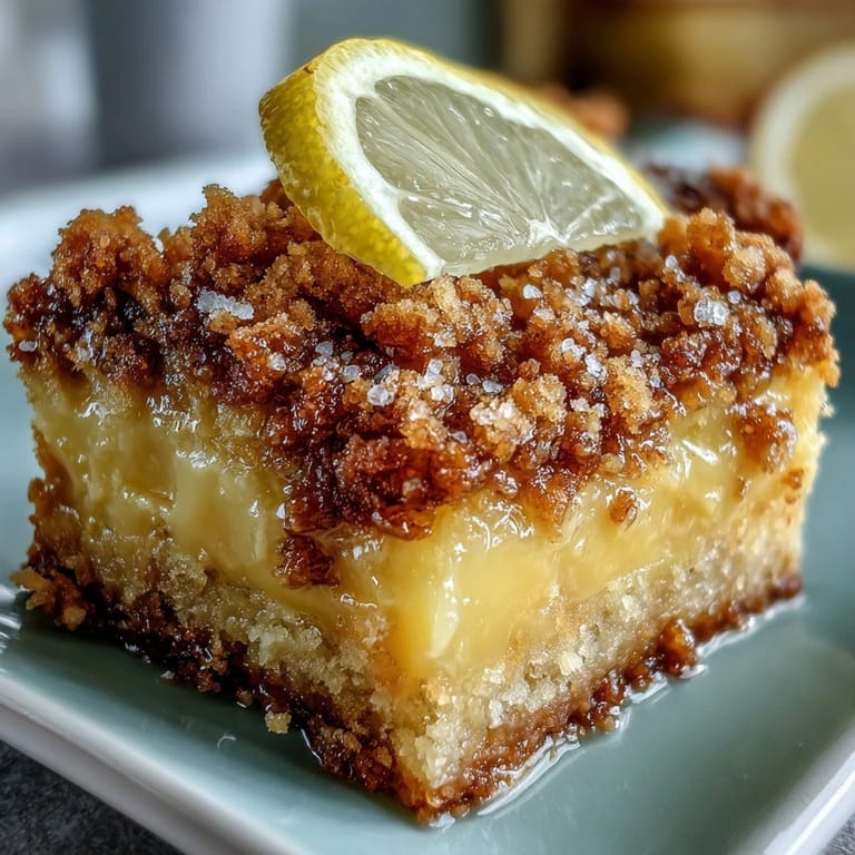 Save Brighten your dessert spread with these Homemade Lemon Crumb Bars. A tender lemon filling bursts with citrus zing beneath golden, buttery crumbs that crumble with every bite. These bars offer a delightful balance of tangy sweetness and a melt-in-your-mouth texture that makes them an instant favorite for any citrus lover.
