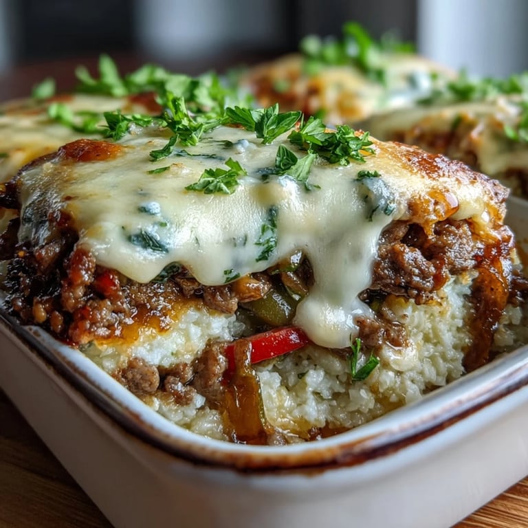 Save This Keto Philly Cheesesteak Casserole with Cauliflower Rice is a hearty, low-carb twist on the classic Philly cheesesteak. Featuring tender beef, sautéed peppers and onions, and a savory cauliflower rice base all topped with gooey cheese, it is the perfect comforting meal for anyone following a keto-friendly diet.