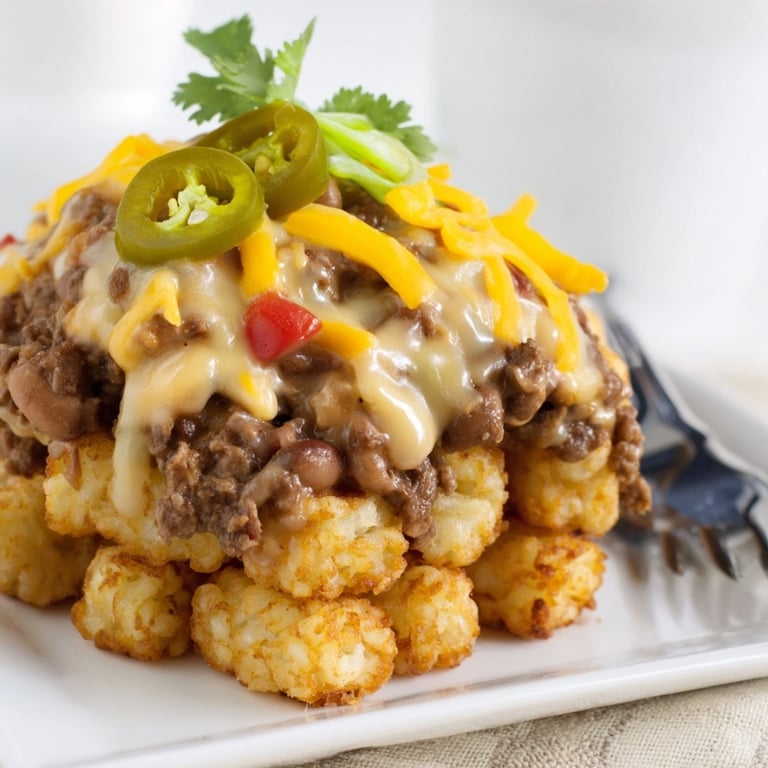 This recipe is pure American comfort with diner roots. It takes two classic dishes and merges them in a way that would fit right in at a Midwestern pub or a backyard get together. The mashup trend has real roots for game day food but also brings the nostalgia of school lunches and family potlucks. Loaded tot dishes first became trendy in the US in the early 2000s and have stuck around thanks to the balance of crunchy and creamy.