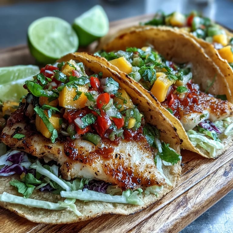 Save There's something about a perfectly seared piece of fish that reminds me why I stopped overthinking weeknight dinners. Last summer, I was standing at the market on a Thursday evening, caught between the usual rotation of chicken and ground turkey, when the tilapia caught my eye—pale, pristine, and practically calling for something bright. That night, these mango salsa tilapia tacos came together almost by accident, born from what I had in the crisper drawer and a sudden craving for something that tasted like the beach felt. Now they're my go-to when I want to feel like I'm doing something special without actually stressing about it.