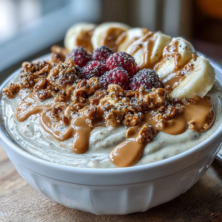 Save There's something about standing in my kitchen on a rushed Tuesday morning, coffee not even brewed yet, when I realized I'd thrown together frozen bananas, peanut butter, and protein powder into something that tasted like dessert but actually fueled my entire day. That moment changed how I thought about breakfast—suddenly it wasn't about obligation but about treating myself to something that felt indulgent and nourishing at once. This smoothie bowl became my answer to those mornings when I wanted something substantial enough to keep me satisfied through my workout, yet simple enough to make before my brain fully woke up. The beauty of it is how forgiving it is; you can make it exactly as thick or creamy as your mood demands, and the toppings become your canvas for whatever fresh fruit is sitting on your counter.