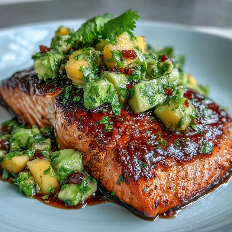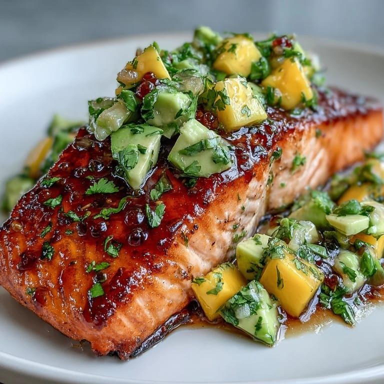 Save The aroma of roasting salmon has always reminded me of early summer evenings when the sun streams through my kitchen window, catching the color of fresh mango on the counter. One afternoon, after spotting perfectly ripe avocados at the market, I started dreaming up this meal—something light but packed with flavor and texture. A splash of lime and a touch of paprika in the air made the moment feel like a quiet celebration. The first bite was a surprise, sweet and tangy salsa swirling with the rich salmon beneath. Now, every time I make this dish, it feels like a little tribute to the season’s brightness—simple, lively, and just a bit unexpected.
