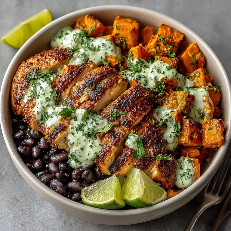 Save This Chipotle Chicken Bowl with Black Beans, Sweet Potatoes, and Cilantro Lime Sauce is my go-to when I want a boldly flavored dinner that feels nourishing and deeply satisfying. Each layer is packed with smoky spice, sweet caramelized vegetables, and creamy, herb-laden sauce. The best part is how effortlessly it comes together whether you are prepping for the week or sitting down to a quick family meal, this recipe never disappoints and is endlessly adaptable.