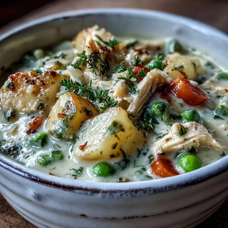 Save There's something magical about opening a container of rotisserie chicken on a Tuesday evening and deciding the whole thing belongs in soup. That particular night, my kitchen smelled like butter and thyme before I'd even finished chopping vegetables, and I knew I was onto something that would taste like comfort wrapped in a bowl. This creamy chicken pot pie soup emerged from wanting that beloved pot pie experience without the fuss of pastry, and somehow it became even better—pure, uncomplicated coziness.