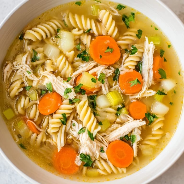 Save A cozy, homemade classic that cooks itself while you get on with your day. Tender shredded chicken, soft vegetables, and twirly noodles come together in a warm, comforting broth that tastes like its been simmering all afternoon.