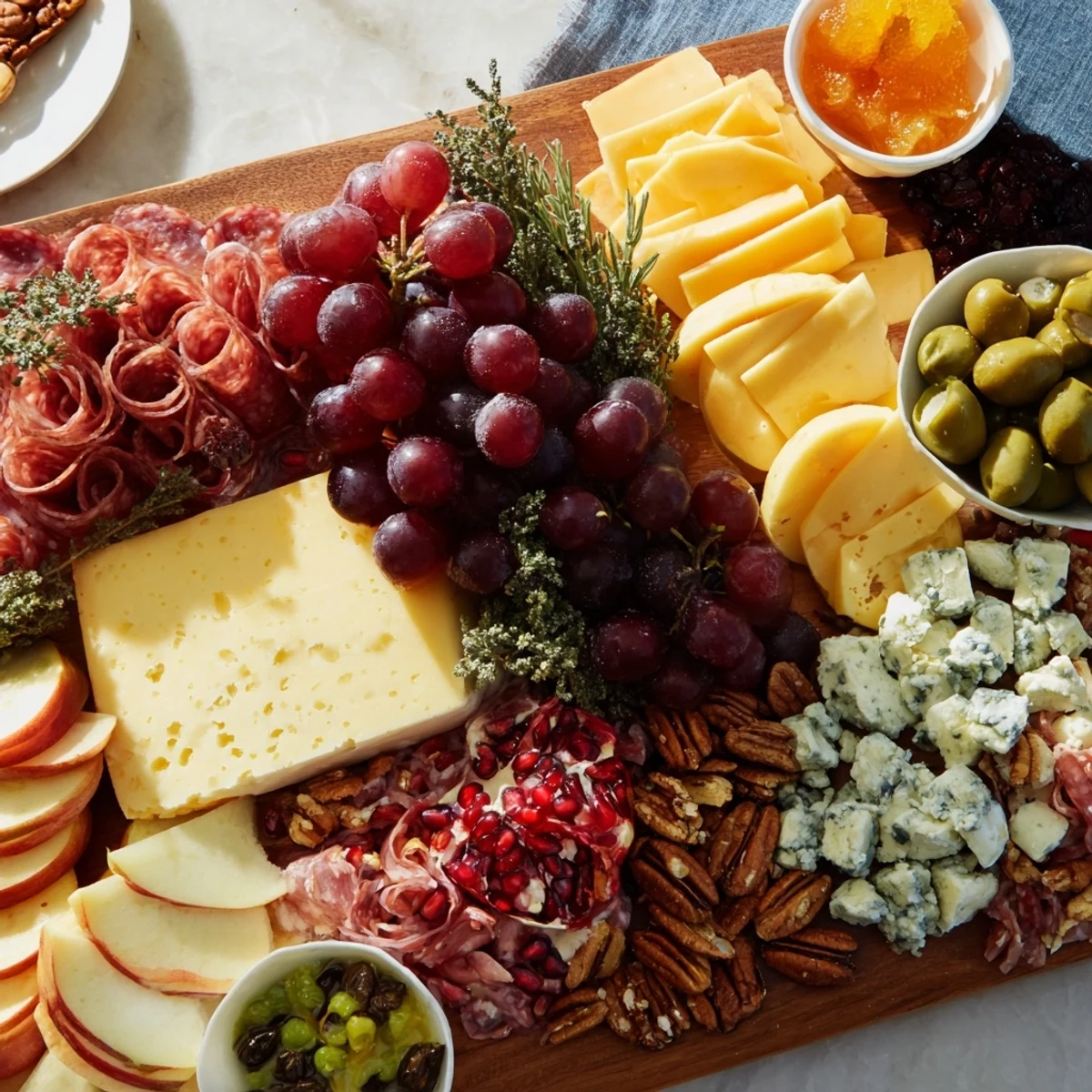 To keep apple and pear slices fresh and prevent browning, toss them lightly with lemon juice before arranging on the board. Use star-shaped cookie cutters to cut cheese slices and add a whimsical, holiday-themed touch. Ensure all ingredients are at room temperature for the best flavor and texture experience.
