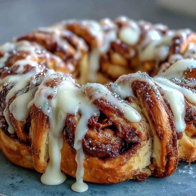 Save The first time I made this, I was standing in my kitchen on a gray February afternoon, staring at two cans of refrigerated cinnamon rolls like they held some kind of secret. My neighbor had casually mentioned wanting something festive for Mardi Gras, and instead of overthinking it, I just started twisting. What emerged from the oven an hour later was this golden, sticky wreath that somehow felt both silly and genuinely impressive, and I realized that sometimes the best celebrations come from the simplest shortcuts.