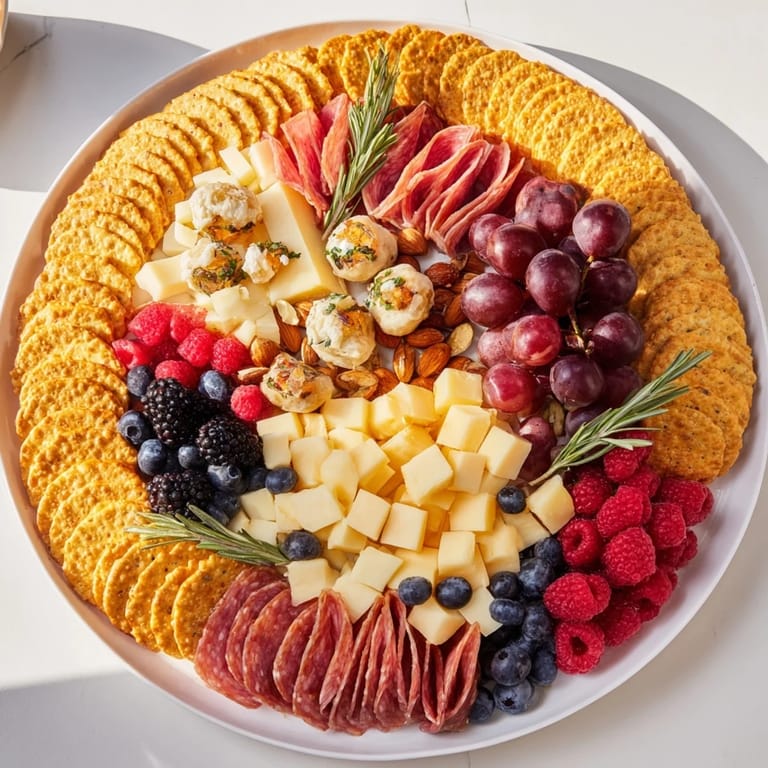 When you serve this platter, you're not just feeding people; you're creating a focal point, a moment where everyone gathers and pauses. That pause is where connection happens. I've learned to pair it with soft music, good lighting, and the confidence to let the platter speak for itself. People will ask questions, will linger, will remember. If you want to elevate it further, pair it with wine—a crisp Sauvignon Blanc makes the citrus notes in the fruit sing, while a sparkling rosé adds celebration to every bite.