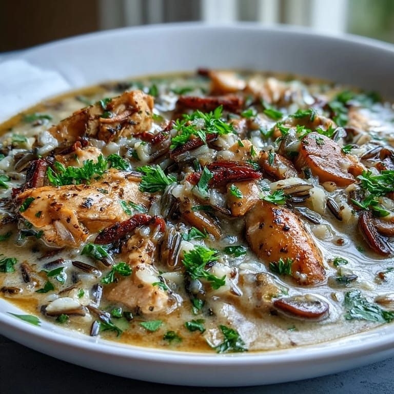 Save There's something about the first cold snap of autumn that sends me straight to the stove, and this soup emerged from one of those moments when I was standing in my kitchen at dusk, staring at a container of cremini mushrooms that needed rescuing. My neighbor had dropped off some wild rice she'd picked up at the farmers market, and suddenly the pieces came together, layer by layer, building into something that smelled like comfort itself. The chicken adds substance, but it's really the marriage of earthy mushrooms and nutty wild rice with a whisper of Parmesan that makes this soup sing, creating that deep, savory umami that keeps you reaching for another spoonful.