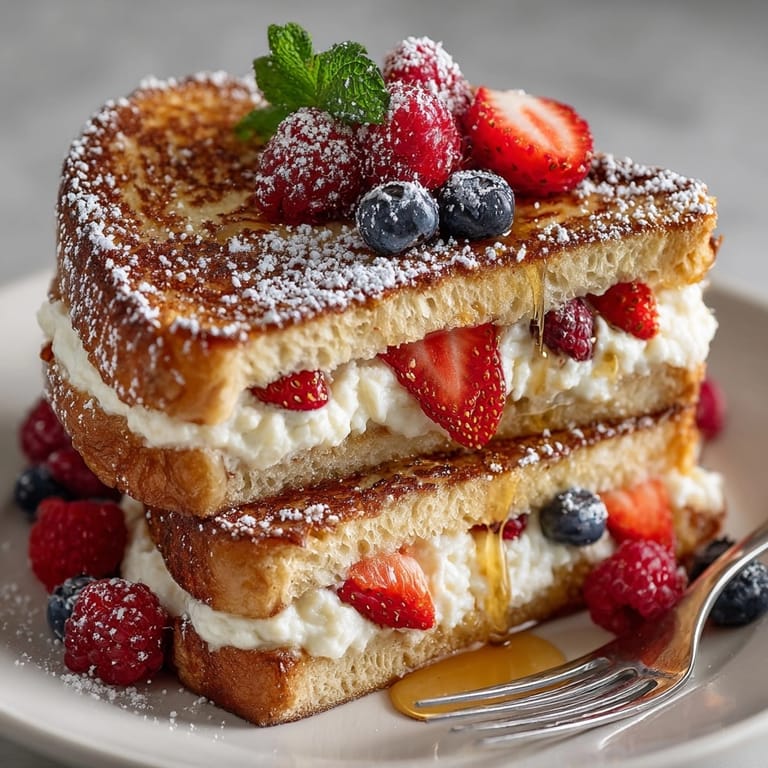 French toast has old roots going back to the Middle Ages and was created as a way to use up stale bread. The idea of stuffing it came about later but is now a mainstay at American brunch tables especially in diners and cafรฉ style eateries. Swapping in ricotta adds an Italian twist that feels both elegant and homey.