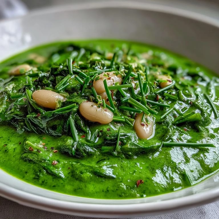 The secret to this soup's stunning color and depth of flavor lies in layering. Aromatic onion, leek, celery, and garlic are gently sautéed in olive oil until soft and fragrant, building a savory base. Broccoli and zucchini join next, adding body and sweetness. The white beans bring a creamy richness that makes the finished soup feel indulgent without any dairy. A final addition of fresh spinach, parsley, and chives—wilted just briefly before blending—locks in that gorgeous emerald hue and a bright, herbaceous finish that a squeeze of lemon only amplifies.
