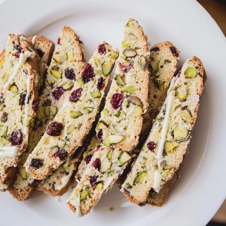 The first time I baked these biscotti was for a holiday cookie swap at work. Everyone loved the blend of tart cranberries and nutty pistachios, especially with those sweet bursts of white chocolate. They became a must-have every year!