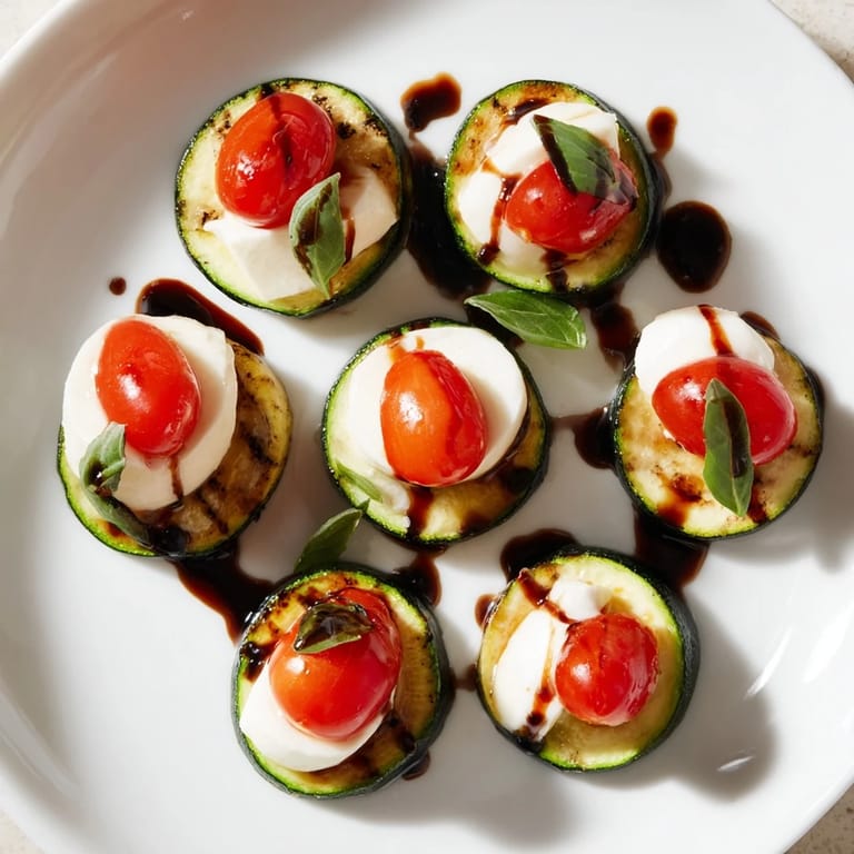 Save I sliced my first zucchini too thick and ended up with soggy green pucks that slid apart the moment anyone tried to pick them up. The mozzarella melted everywhere, the tomatoes rolled off, and I stood there holding a serving platter of beautiful chaos. That night taught me that half an inch matters more than I thought, and now these bites come out perfect every timeβcrisp enough to hold their shape, tender enough to bite through, and exactly the right size for one satisfying mouthful.